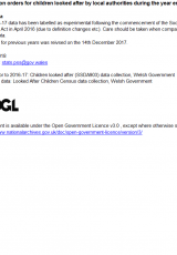 Gorchmynion mabwysiadu ar gyfer plant sy'n derbyn gofal gan awdurdodau lleol, Ebrill 2013 i Mawrth 2017 , Saesneg yn unig, math o ffeil: ODS, maint ffeil: 16 KB