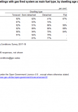 Anheddau â system nwy fel y prif fath o danwydd, yn ôl oedran a math o annedd, Ebrill 2017 i Fawrth 2018 , Saesneg yn unig, math o ffeil: ODS, maint ffeil: 16 KB
