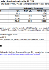 Staff GIG Cymru yn ôl band cyflog a chenedligrwydd, 2018 , Saesneg yn unig, math o ffeil: ODS, maint ffeil: 15 KB