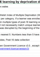 Dysgwyr unigryw 16 i 19 oed mewn darpariaeth dysgu ôl-16 yn ôl degradd amddifadedd, Medi 2018 i Awst 2020 , Saesneg yn unig, math o ffeil: ODS, maint ffeil: 11 KB