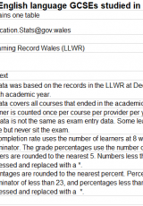 • Deilliannau TGAU Saesneg a astudiwyd mewn sefydliadau addysg bellach, o fis Awst 2018 i fis Medi 2019 ac o fis Awst 2020 i fis Medi 2021