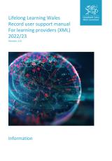 Version 3.0: Lifelong Learning Wales Record user support manual for learning providers (XML) 2022 to 2023 , Saesneg yn unig, math o ffeil: PDF, maint ffeil: 2 MB