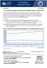 Cofrestrau awdurdodau lleol o bobl anabl, ar 31 Mawrth 2015 , Saesneg yn unig, math o ffeil: PDF, maint ffeil: 559 KB