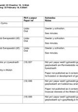 Agenda a chofnodion cyfarfod y Bwrdd ar 22 Chwefror am 9.30yb, Caerdydd.