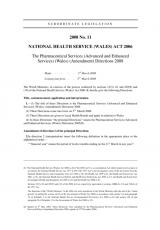 Cyfarwyddiadau Gwasanaethau Fferyllol (Gwasanaethau Uwch ac Uwch) (Cymru) (Diwygio) 2008 (2008 Rhif 11) , Saesneg yn unig, math o ffeil: PDF, maint ffeil: 87 KB