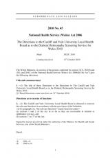Cyfarwyddiadau i Fwrdd Iechyd Lleol Prifysgol Caerdydd a'r Fro ynghylch Gwasanaeth Sgrinio Retinopathi Diabetig Cymru Gyfan (2010 Rhif 45) , math o ffeil: PDF, maint ffeil: 120 KB