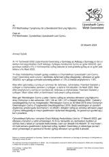 Llythyr gan Lywodraeth Cymru wedi’i anfon at awdurdodau lleol ar 22 Mawrth 2023.