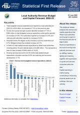 Cyllideb refeniw awdurdodau lleol a rhagolygon gwariant cyfalaf, Ebrill 2022 i Fawrth 2023 , Saesneg yn unig, math o ffeil: PDF, maint ffeil: 396 KB