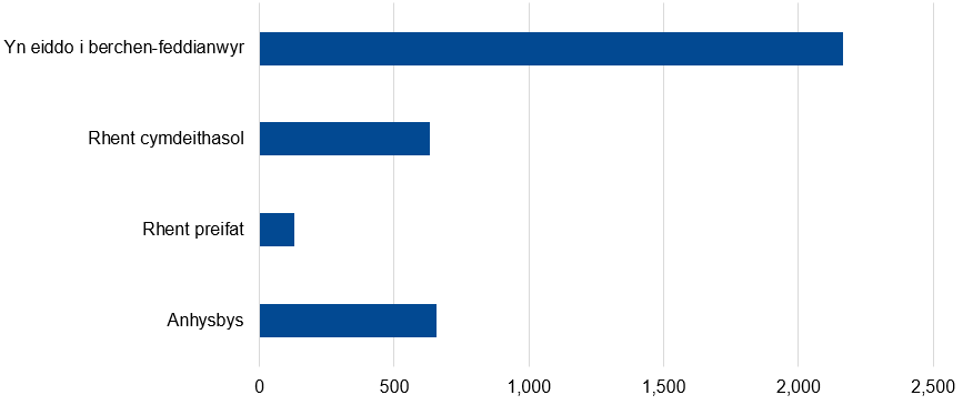 Ffigur 4: Nifer yr anheddau a gafodd eu gwella yn ôl deiliadaeth, 2021-22 [Nodyn 1]
