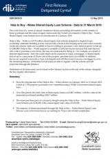 Cymorth i Brynu - Cymru (Cynllun Benthyciad Ecwiti a Rennir), 2 Ionawr 2014 i 31 Mawrth 2015 , Saesneg yn unig, math o ffeil: PDF, maint ffeil: 657 KB