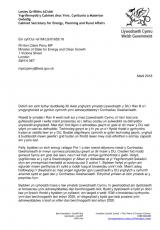 Llythyr at y Gweinidog Gwladol dros Ynni a Thwf Glân ynglŷn â chynnwys ynni gwynt ar y tir yng nghynllun cymorth ynni CfD.