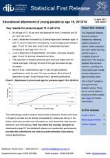 Cyrhaeddiad addysgol gan bobl ifanc erbyn 19 oed, Medi 2013 i Awst 2014 , Saesneg yn unig, math o ffeil: PDF, maint ffeil: 564 KB