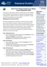 Data sy'n dangos y symudiadau tymor byr yn allbwn diwydiannau yn y sectorau cynhyrchu, adeiladu a gwasanaethau marchnad ar gyfer Gorffennaf i Fedi 2023.