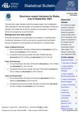Data sy'n dangos y symudiadau tymor byr yn allbwn diwydiannau yn y sectorau cynhyrchu, adeiladu a gwasanaethau marchnad ar gyfer Gorffennaf i Fedi 2024.