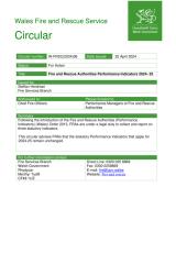 Dangosyddion Perfformiad awdurdodau tân ac achub 2024 i 2025 (WFRSC(2024)06) , Saesneg yn unig, math o ffeil: PDF, maint ffeil: 125 KB