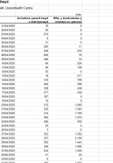 Data cryno am coronafeirws (COVID-19) a'r ymateb iddo: 13 Gorffennaf 2020 , math o ffeil: ODS, maint ffeil: 31 KB
