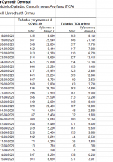Data cryno am coronafeirws (COVID-19) a'r ymateb iddo: 13 Hydref 2020 , math o ffeil: ODS, maint ffeil: 27 KB