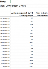 Data cryno am coronafeirws (COVID-19) a'r ymateb iddo: 18 Mai 2020 , math o ffeil: ODS, maint ffeil: 25 KB
