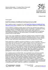Llythyr i randdeiliaid am stopio cosbi corfforol yng Nghymru ar 21 Mawrth.