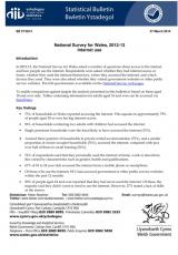 Defnydd o'r rhyngrwyd (Arolwg Cenedlaethol Cymru) Ebrill 2012 i Mawrth 2013 , Saesneg yn unig, math o ffeil: PDF, maint ffeil: 441 KB