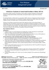 Derbyn cleifion i gyfleusterau iechyd meddwl, Ebrill 2014 i Mawrth 2015 , Saesneg yn unig, math o ffeil: PDF, maint ffeil: 600 KB
