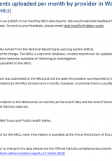 Defnyddir y set data hon i fesur lefelau adrodd gan sefydliadau’r GIG gan gynnwys pa mor rheolaidd a phrydlon y bydd yn cael ei adrodd. Nid yw’n addas i gymharu rhwng byrddau iechyd neu i wneud newidiadau dros amser oherwydd y gwahaniaeth rhwng pa bryd y digwyddodd rhywbeth a pha bryd y cafodd ei adrodd.