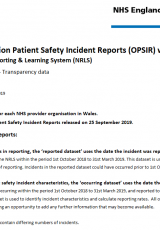 Llyfr gwaith Adroddiadau Sefydliad ar Ddigwyddiadau Diogelwch Cleifion (OPSIR): Hydref 2018 i Fawrth 2019 , Saesneg yn unig, math o ffeil: XLSX, maint ffeil: 83 KB