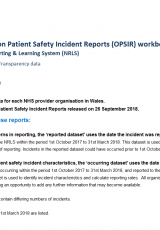 Sefydliad llyfr gwaith adroddiadau ar ddigwyddiadau diogelwch cleifion (OPSIR): 1 Hydref 2017 i 31 Mawrth 2018 , Saesneg yn unig, math o ffeil: XLSX, maint ffeil: 92 KB