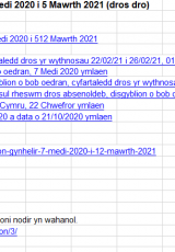 Bydd y data o 1 Mawrth ymlaen yn cael ei ddiweddaru yn ein datganiad ar 24 Mawrth 2021.
