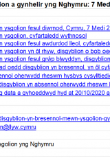 Os oes angen fersiwn fwy hygyrch o’r ddogfen hon arnoch, e-bostiwch digidol@llyw.cymru. Dywedwch wrthym pa fformat sydd ei angen. Os ydych yn defnyddio technoleg gynorthwyol, nodwch fanylion.