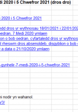Ar 10 Rhagfyr 2020 cyhoeddodd y Gweinidog Addysg y byddai pob ysgol uwchradd a choleg yng Nghymru yn symud i ddysgu ar-lein am wythnos olaf y tymor cyn y Nadolig. Caeodd llawer o ysgolion cynradd yn ystod wythnos olaf y tymor hefyd. O ganlyniad i hyn, roedd canran y disgyblion a oedd yn bresennol yn yr ysgol am yr wythnos yn dechrau 14 Rhagfyr 2020 yn llawer is na'r wythnosau blaenorol.