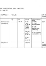 Treuliau busnes a lletygarwch ar gyfer Prif Weithredwr Awdurdod Cyllid Cymru.