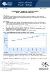 Cyllidebau addysg awdurdodau lleol ar gyfer 2008-09: Cymharu Cymru a Lloegr , Saesneg yn unig, math o ffeil: PDF, maint ffeil: 156 KB