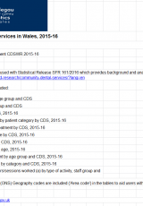 Gwasanaethau deintyddol cymunedol, Ebrill 2015 i Mawrth 2016: tablau , Saesneg yn unig, math o ffeil: ODS, maint ffeil: 156 KB