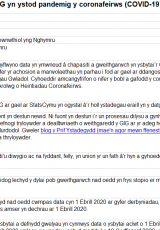 Mae'r datganiad hwn yn canolbwyntio ar gyflwyno data yn ymwneud â chapasiti a gweithgarwch yn ysbytai’r Gwasanaeth Iechyd Gwladol yn unig. Mae gwybodaeth gyd-destunol ehangach fel nifer yr achosion a marwolaethau yn parhau i fod ar gael ar ddangosfwrdd Iechyd Cyhoeddus Cymru ac yn cael ei chyhoeddi gan y Swyddfa Ystadegau Gwladol.