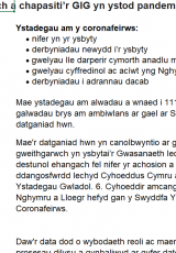 Os oes angen fersiwn fwy hygyrch o’r ddogfen hon arnoch, e-bostiwch digidol@llyw.cymru. Dywedwch wrthym pa fformat sydd ei angen. Os ydych yn defnyddio technoleg gynorthwyol, nodwch fanylion.
