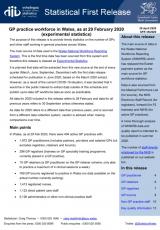 Gweithlu practis cyffredinol, ar 29 Chwefror 2020 (ystadegau arbrofol) , Saesneg yn unig, math o ffeil: PDF, maint ffeil: 654 KB