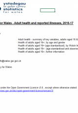 Iechyd cyffredinol ac afiechyd oedolion (Arolwg Cenedlaethol Cymru), Ebrill 2016 i Mawrth 2017: tablau , Saesneg yn unig, math o ffeil: XLSX, maint ffeil: 519 KB