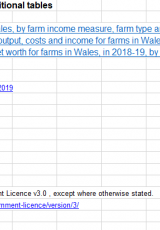 Incymau fferm, Ebrill 2018 i Fawrth 2019: tablau ychwanegol , Saesneg yn unig, math o ffeil: ODS, maint ffeil: 83 KB