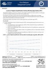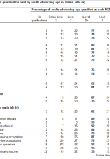 Lefel y cymwysterau uchaf a ddelir gan oedolion o oed gweithio, 2014 , Saesneg yn unig, math o ffeil: PDF, maint ffeil: 647 KB
