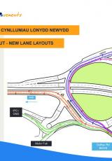 Map yn dangos cynlluniau lonydd cylchfan newydd.