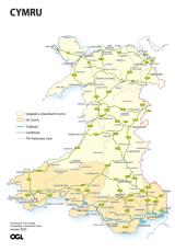 Map yn dangos rhwydwaith ffyrdd a chyfrifoldebau ledled Cymru.