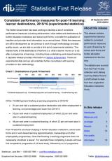 Mesurau perfformiad cyson ar gyfer dysgu ôl-16: cyrchfannau dysgwyr, blwyddyn academaidd 2015 i 2016 (ystadegau arbrofol) , Saesneg yn unig, math o ffeil: PDF, maint ffeil: 716 KB