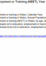 • Datganiad ystadegol cyntaf ‘Cyfranogiad pobl ifanc mewn addysg a’r farchnad lafur’ gan ddefnyddio ffynonellau data addysg a’r Arolwg Blynyddol o’r Boblogaeth.