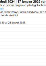 Os oes angen fersiwn fwy hygyrch o’r ddogfen hon arnoch, e-bostiwch digidol@llyw.cymru. Dywedwch wrthym pa fformat sydd ei angen. Os ydych yn defnyddio technoleg gynorthwyol, nodwch fanylion.