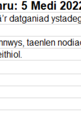 Os oes angen fersiwn fwy hygyrch o’r ddogfen hon arnoch, e-bostiwch digidol@llyw.cymru. Dywedwch wrthym pa fformat sydd ei angen. Os ydych yn defnyddio technoleg gynorthwyol, nodwch fanylion.