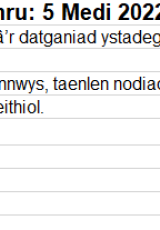 Os oes angen fersiwn fwy hygyrch o’r ddogfen hon arnoch, e-bostiwch digidol@llyw.cymru. Dywedwch wrthym pa fformat sydd ei angen. Os ydych yn defnyddio technoleg gynorthwyol, nodwch fanylion.