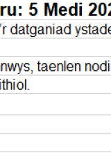 - Yr wythnos ddiweddaraf yw 27 Chwefror i 03 Mawrth 2023, a’r wythnos flaenorol yw 13 i 17 Chwefror 2023. Roedd pob ysgol ar gau am hanner tymor dros yr wythnos 20 i 24 Chwefror 2023.