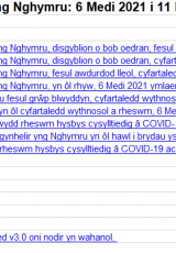 Cyhoeddodd Llywodraeth Cymru ar 15 Medi 2021 y byddai GIG Cymru yn dechrau cynnig y brechlyn COVID-19 i bobl ifanc rhwng 12 a 15 oed o 4 Hydref 2021. Gall cyflwyno'r rhaglen frechu hon hefyd effeithio ar y ffigurau yn y datganiad hwn.