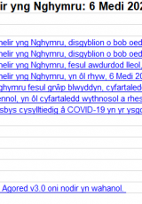 Cyhoeddodd Llywodraeth Cymru ar 15 Medi 2021 y byddai GIG Cymru yn dechrau cynnig y brechlyn COVID-19 i bobl ifanc rhwng 12 a 15 oed o 4 Hydref 2021. Gall cyflwyno'r rhaglen frechu hon hefyd effeithio ar y ffigurau yn y datganiad hwn.